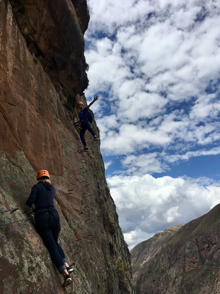 4 – Petra and I decided to climb via ferrata (protected climbing route) in Ollantaytambo that was 1000 ft/300 m high. I am usually not afraid of heights so I thought I would be fine doing this climb. Boy was I challenged by keeping my fears in check and completing this probably most daring activity I’ve ever done. Petra, on the other hand, she was the leader of our group, she encouraged me to not think about how high we were above ground (only attached to the mountain with 2 ropes and nothing under us), to just keep going and find it within me to enjoy our accomplishment. To give you some perspective, Eifel tower is 300 meters high, Space Needle is half as tall. 1000 feet/300 meters – that’s freaking high, especially when there is NOTHING under you. We could hardly see people, they seemed smaller than ants. In the past, I’ve seen adventure travel photos on Instagram of some Airpods (hotel rooms on the side of the mountain) but never really thought I would see them in real life, let alone climb right above them with a guide that left us for a bit to go replenish supplies for the guests staying in them. And as an inspiration for this adventure, we gotta thank my lovely sister Dragana who did a much more challenging via ferrata in Switzerland last year. She motivated us to try this, thinking “it can’t be that bad, we will be connected to the mountain at all times”. Yeah right! I was definitely way out of my comfort zone, experiencing fear of heights I didn’t’ think I had. Petra was my rock!!!