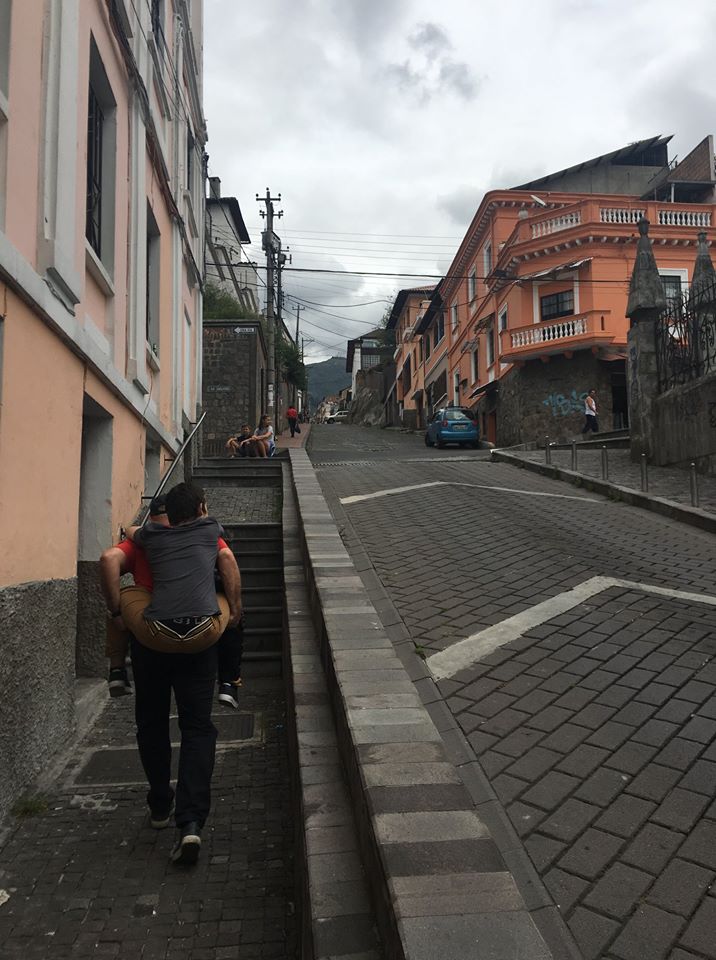 We also had several mishaps in Quito. I tripped and fell on a busy street (in a tight corridor with some wire fence on one side) and scraped my left arm (walking with Nini is a hazardous activity).