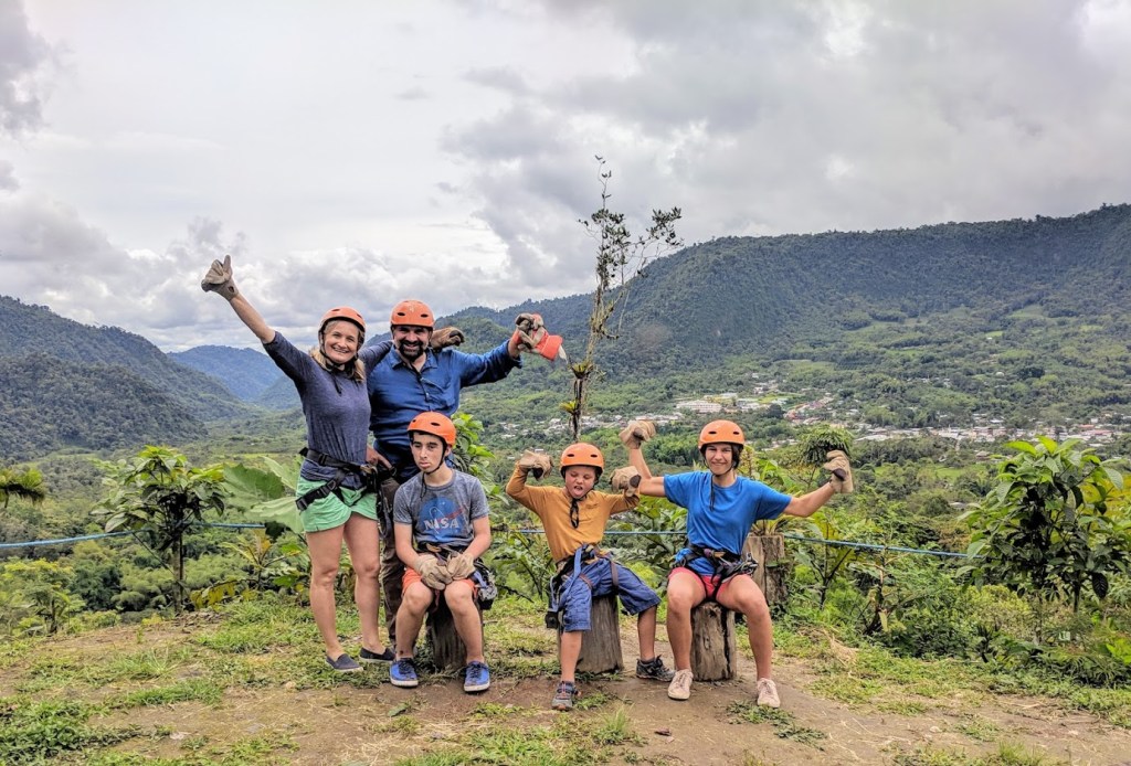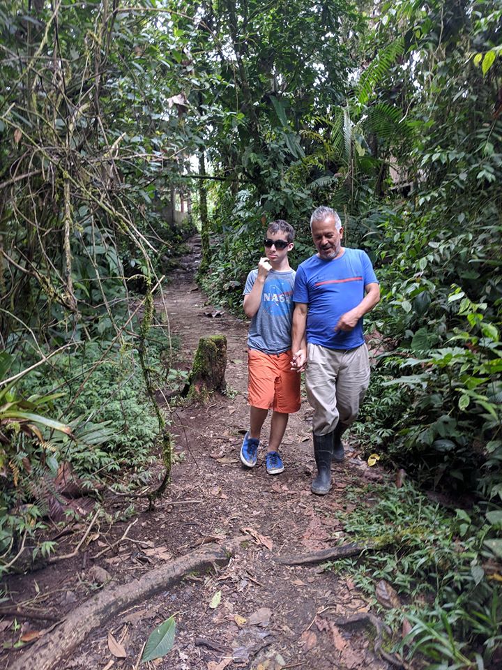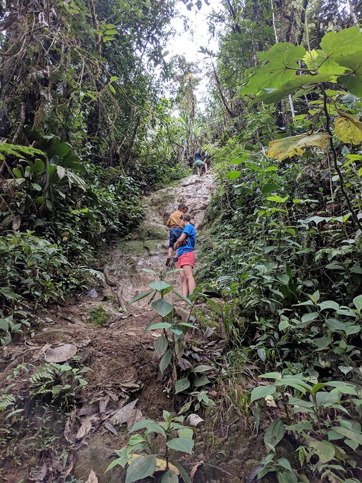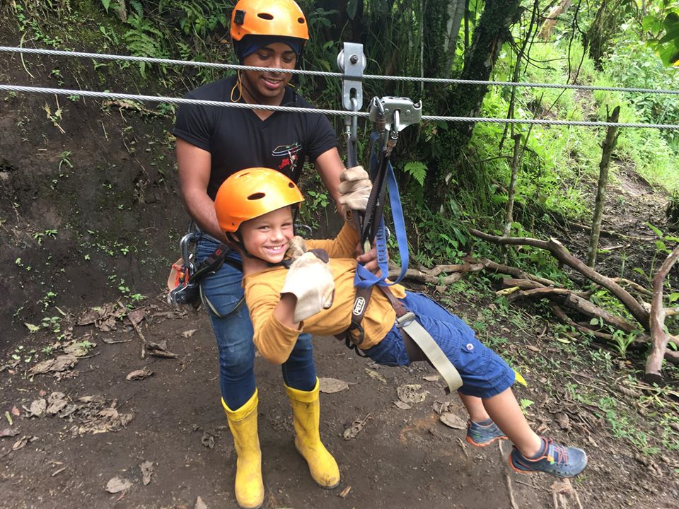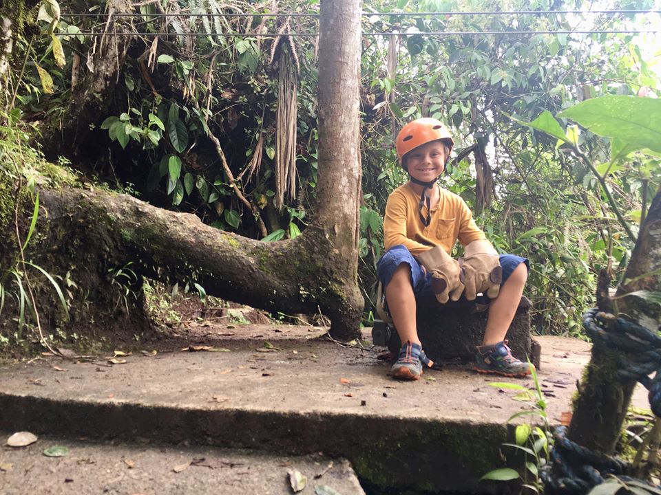 There were many different types of flowers we’ve never seen before. Our cabin had a hammock right in front of it and you could hear the river that was just a short walk away. The nature was quite beautiful. We had some great food in Mindo. We visited a butterfly sanctuary and hiked through the cloud forest to a waterfall where the kids and Pedja swam in freezing cold waters. We also did the best ziplining ever, 10 ziplines in total, over 3km in total, a couple of those lines were 500m long. We were all flying above the trees at great heights for a couple of hours but the most impressive part is that Nikola did this activity with us, doing the first few lines with the guide and then the rest of them by himself. He was so proud of himself and we were happy to be able to do an activity that included him and he’s so obviously enjoyed.