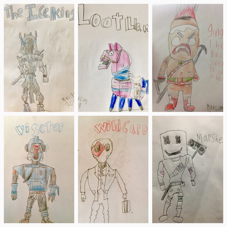 Maki discovered drawing instructional videos on YouTube and drew a collection of Fortnite characters that accompanied his letters to friends back home.