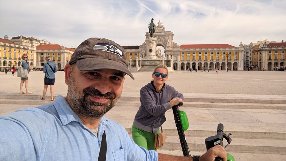 Although we had a car, we did not use it except for a daytrip to Sintra. We walked everywhere, hours at the time. All that urban walking I’ve done with the kids back in Seattle is coming handy now because our kids are used to it and don’t complain much, if at all. In Lisbon, we even rented scooters a couple of times and Nina especially thought that was fun. Pedja was fascinated with all the tile, everywhere – on sidewalks, buildings, benches, on the streets.