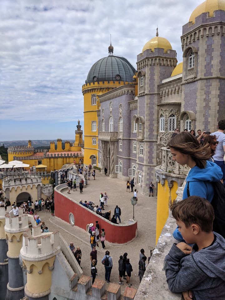 We all truly enjoyed the day we spent in Sintra. We went to the park and National Palace of Pena and were fortunate to start with the hike through the park before we ran into huge crowds at the palace. Wait line to get into the palace was at least a couple of hours long but we got to skip it on account of Nina. Petra and Maksim are often annoyed with Nina but when his benefits serve them well, they are happy to be in the same family. Maksim managed to scrape his toe running around the palace grounds and we once again were witnesses to the superb organization and quick response of first aid people. After spending a few hours at this palace, the kids were done with sightseeing and wanted to stay in the car while Pedja and I quickly when in to see Quinta da Regaleira. It turned out that we loved this place a lot more than the Palace of Pena. In conclusion, if in Lisbon, don’t miss the opportunity to visit Sintra.