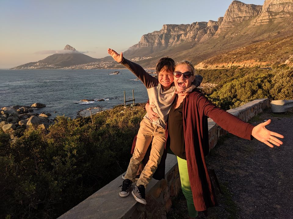 In Cape Town, we did all the touristy things, walked a lot, visited the waterfront, Sunday markets, and saw a great aquarium. We met new friends in South Africa. People there are friendly and especially accommodating to kids.
