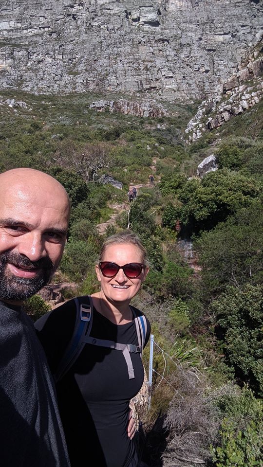 On the first night in Cape Town, we struck up a conversation with Andrew, US scientist working for the NIH at the university in Cape Town, who gave us an overview of ‘must-dos’ in Cape Town. He inspired us to hike up the Table Mountain, a prominent landmark overlooking Cape Town. We were “lucky” that the funicular that connects the city with the mountain was shut down for annual maintenance so we had to experience hiking up the mountain as well as coming down on foot afterwards. I was under false impression that there were no snakes at this time of the year so I was happy (and ignorant) as a clam and I enjoyed this experience to the fullest (despite hip issues). And yes, we didn’t see any snakes even though we heard a couple of days later that “heck yeah, there are snakes even in July” (another new friend just caught one in front of their house that same week) . Anyway, our journey up the mountain was a fantastic activity for the four of us, especially considering that we covered only 2km each way but with about 900m elevation gain.