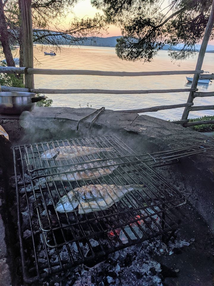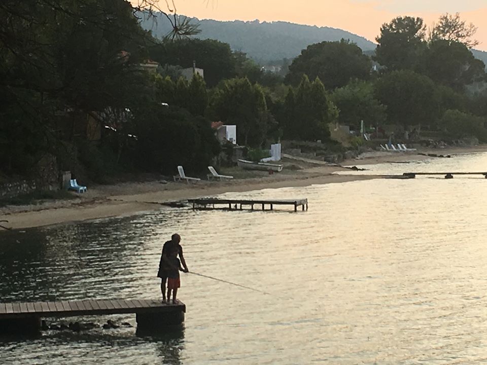 We did rent 2 boats one day to explore the island directly across from our place and that was as much of an action we could handle in those 2 weeks. Girls (and I) worked on our needle point, Pedja’s niece Katarina and grandpa Milan dove for big shells, grandpa Milan taught kids fishing, we celebrated Pedja’s 46th birthday, every night felt like some sort of a dinner celebration.