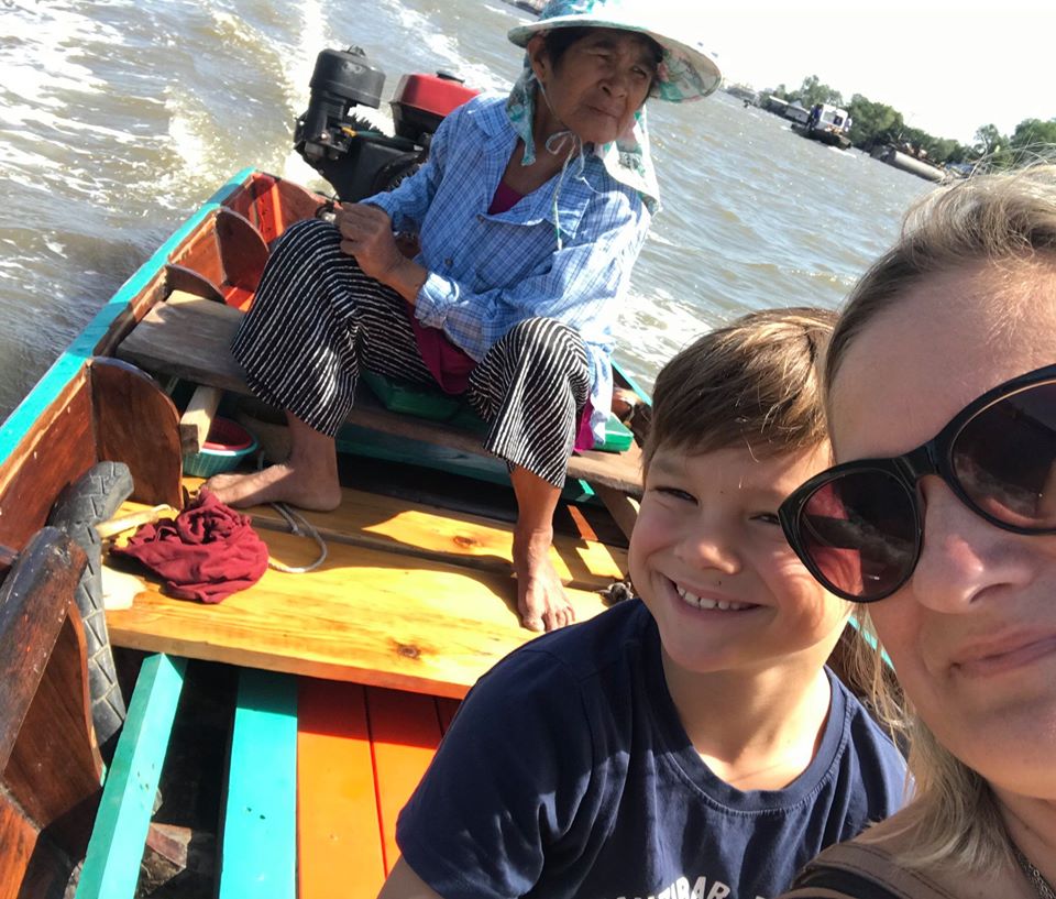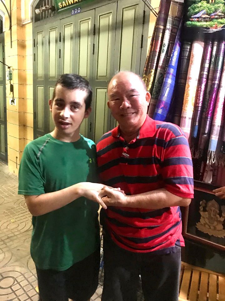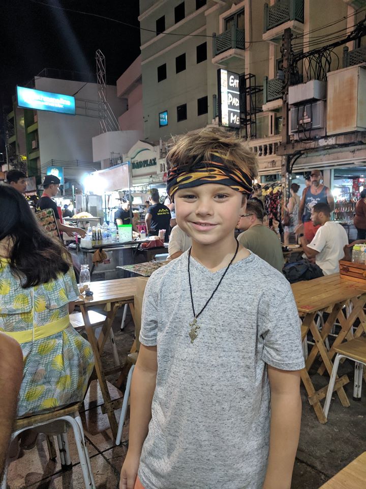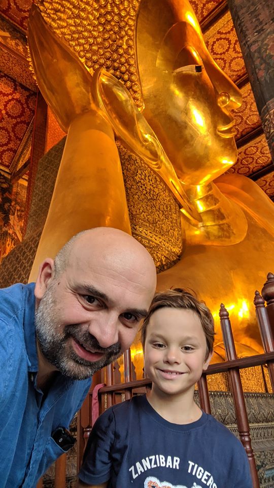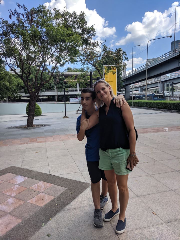 People love Nina. Wherever we go, he attracts good. Once in Bangkok, he wanted me to get him some random painting. Knowing fully well that there was no way for us to carry it with us, I kept telling him that we cannot buy it, that he didn’t bring his money with him, that we have no way to carry it. Then the store owner took one piece of art made out of cloth with Buddha on it and gifted it to Nina. Despite my protests, he insisted on giving it to him and Nina was eager to take it. I took a photo of Nina and his new friend and included it with this post. This painting of Buddha (thank goodness it was done on a piece of cloth) is now folded in Nina’s carryon luggage and he regularly takes it out to proclaim that he “got that in Bangkok, it’s a picture of Buddha. This Buddha was zilch, zero, nada bath” (bath = Thai currency).