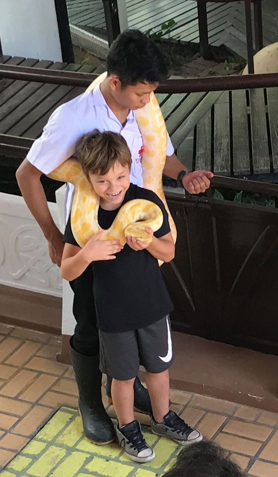 In Bangkok, Petra, Pedja and I went out for early morning walks and a few workouts. A few parks had workout equipment that was free to use so we took advantage of it. We even got to play ping-pong with the locals once. One morning, all 5 of us came out to the park and Nina got to lift weights too. He was so proud of himself. It was a bit unnerving to see that his right side of the body is way weaker than the left side. It’s understandable since he has always had a lot more epileptic activity in the left side of his brain. At times, I could see that he was not doing well by how much he used (or did not used) his right arm. Not sure what to think of the current state of his health because, among these worrisome observations, I also see some good progress in other areas. He read for me aloud when we were at the snake museum, the first time since 1st grade!!! That was HUGE!!! I knew that he can read really well, really fast but he would not say the words aloud. With the incentive of going on a hunt for Pokémon cards in Bangkok, he read every display at the snake museum. I was on a brink of tears when I heard his voice reading aloud the first time after so many years!