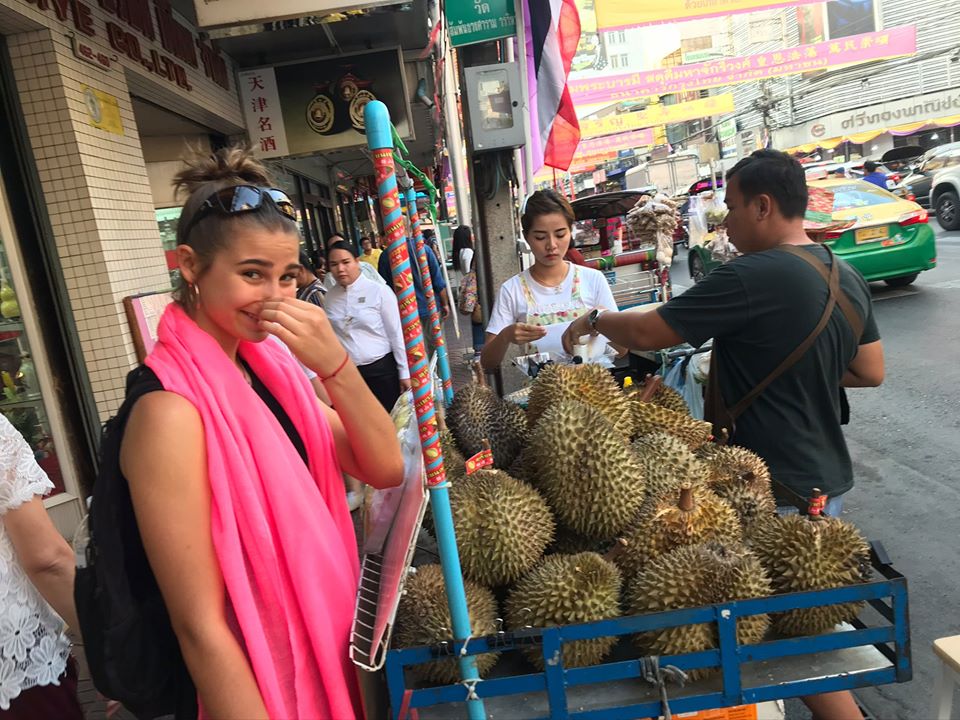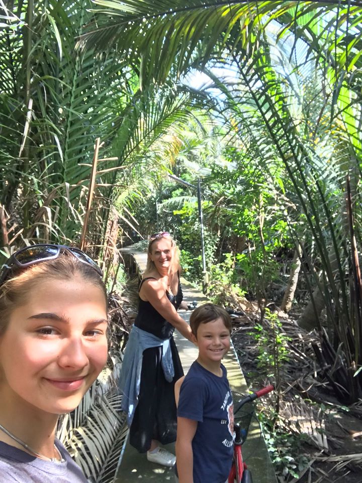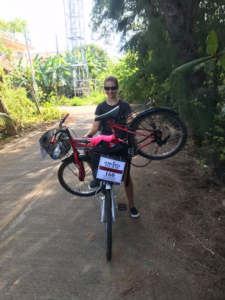 Petra, Maksim and I went on a little adventure of our own. It turned out a bit scarier than I would have liked it to be. We took a boat to a bit underdeveloped part of Bangkok where we rented bikes to ride around that area called Green Lung. It turned out the bikes were super old and kinda rickety, and the path we rode was about 4 feet wide and 6-8 feet above the ground (with no railing). I ended up dropping my phone in the thick green bushes, 6 feet below our path. There was no way in hell I would have gone down to get it (especially with my fear of snakes). Thank goodness there was a young boy who was not as afraid of greenery as I was and he got it out for me (and I rewarded him handsomely)! Then, later on, Maksim was riding ahead of me and stepped on the breaks suddenly and I fell off the bike behind him and scraped my knee. It was a much better option for me to crash behind him than to fall off the path into the swampy marsh under us. Since most crazy things come in threes, we had another mishap on this adventure. Maki popped his tired so for the last 2 miles, Petra carried Maki in the back of her bike and Maki’s bike on her handles. Overall, it was a memorable experience that we thankfully survived and can now tell stories about.