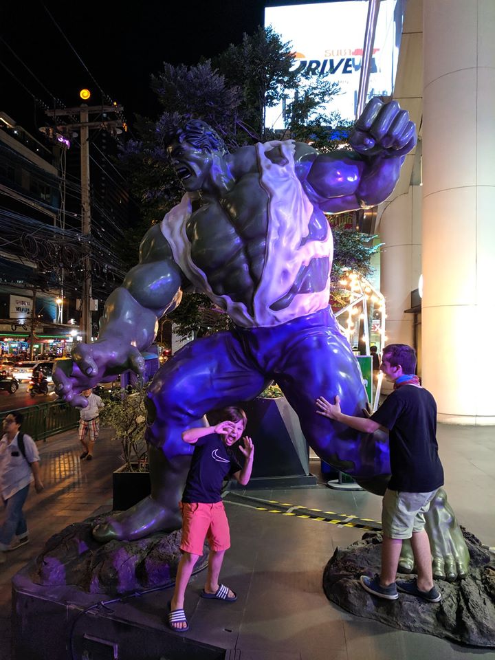 Bangkok is huge, it’s interesting, I wish it was our last stop before going back home so that we could do some serious shopping there. Most of the things we would buy would be fakes but we are not sticklers for high brands. It was great to see some items (Calvin Kline underwear for example) that usually can cost up to $50 in the States sold in Bangkok for $3. I don’t know about you but I don’t need $50 underwear (I especially don’t need Calvin Kline underwear to peek under my waistband). $3 quality will do 😉