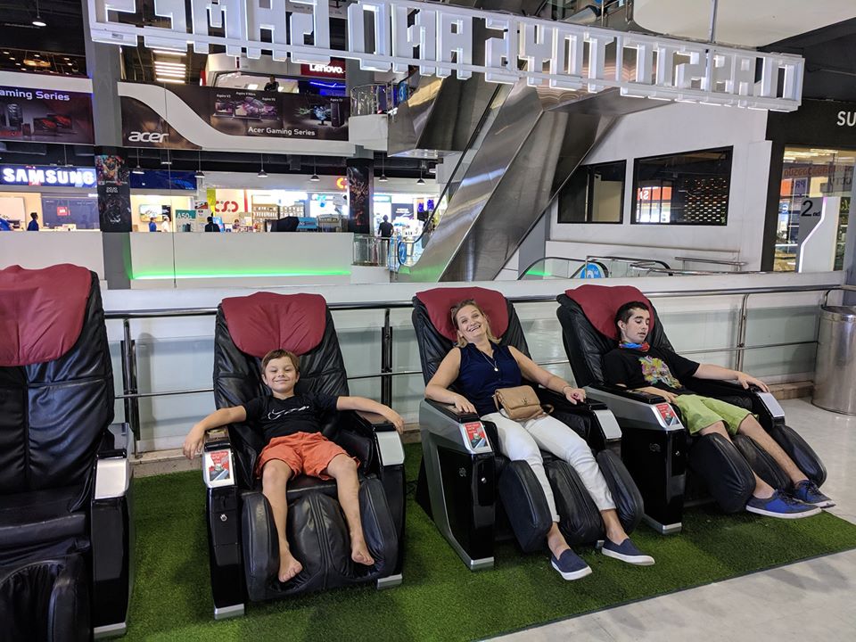 Huge malls were overwhelming for us. There seems to be a mall for any sort of product in Bangkok. While we were in electronics and games malls, Nina bolted into a store that was selling fancy video game action figures. He went straight for live video production of some YouTube channel. It took me a couple of minutes to get him off their set, so for that little bit of time, he was part of a live show 😉
