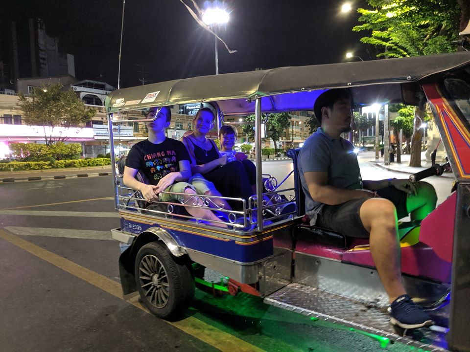 We contemplated taking a sleeper train that would add about 12-13hrs to our travel but then decided against it. The cost of the train was not less than flying and we felt that we were busy enough in Chiang Mai and were going to be busy in Bangkok again that we didn’t need to add additional stops in between. I completely understand that there are tons to see along this supposedly gorgeous train ride. Still, when you are a party of 5, you gotta pick your path based on the overall mood of the group. We are not traveling for 2-3 weeks and have to just plow through it, with no regard for how much energy it takes day in and day out. We are in this for the long run and must make choices based on the overall energy level to sustain the mental health of everyone involved. Hence, a quick flight to Bangkok vs. a more picturesque train ride was the best choice for us.