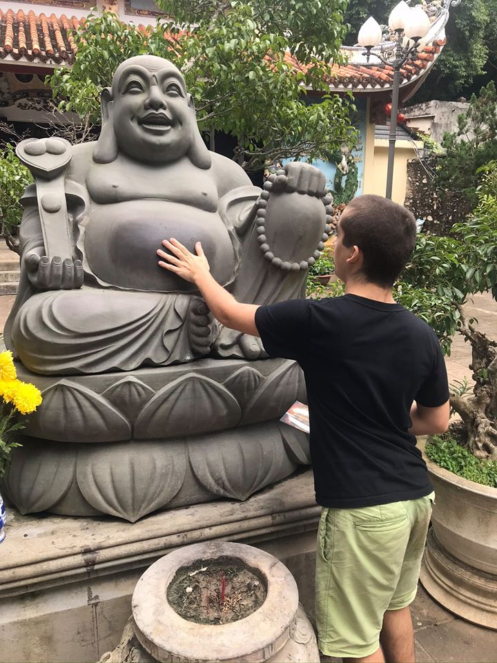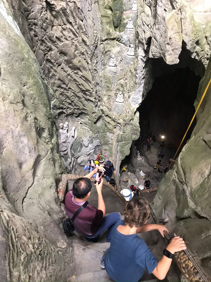 We spent one day visiting the Marble Mountain area, a cluster of five marble and limestone hills with a network of cave entrances and many tunnels containing Buddhist shrines. As far as tourist sites go, we really enjoyed this outing as it gave us an opportunity to roam around this network of caves for several hours, completely relaxed, without much of an agenda or even an attempt to turn it into an educational opportunity.