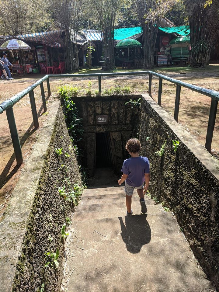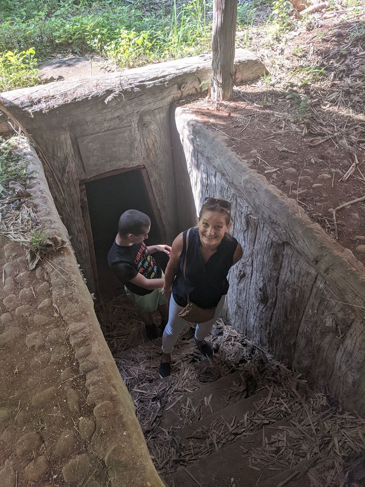 This was an unbelievable system of tunnels, some up to 30 meters underground. We walked through these tunnels by ourselves (no tour guide) and that was an incredibly sobering experience. It was nerve-racking to be in those tight, dark tunnels that seemed to never end. We kept going deeper and deeper that I had to keep my anxiety level in check to not have them turn into full-blown panic attacks. We walked through the tunnels long enough that at some point, we somehow ended up in the part that was closed to the public and no longer maintained. We walked for over 15 minutes in pitch dark, completely alone, anxiously wondering when and where we would surface up. I am certain that our kids will forever remember these tunnels. As we passed through the last portion of the tunnel with support beams that were almost caved in, we finally surfaced up through some exit/entrance that was obviously abandoned, overgrown with bamboo. Although turning into that dark portion of the tunnels was not the smartest parenting move on our part, thankfully, we survived it.