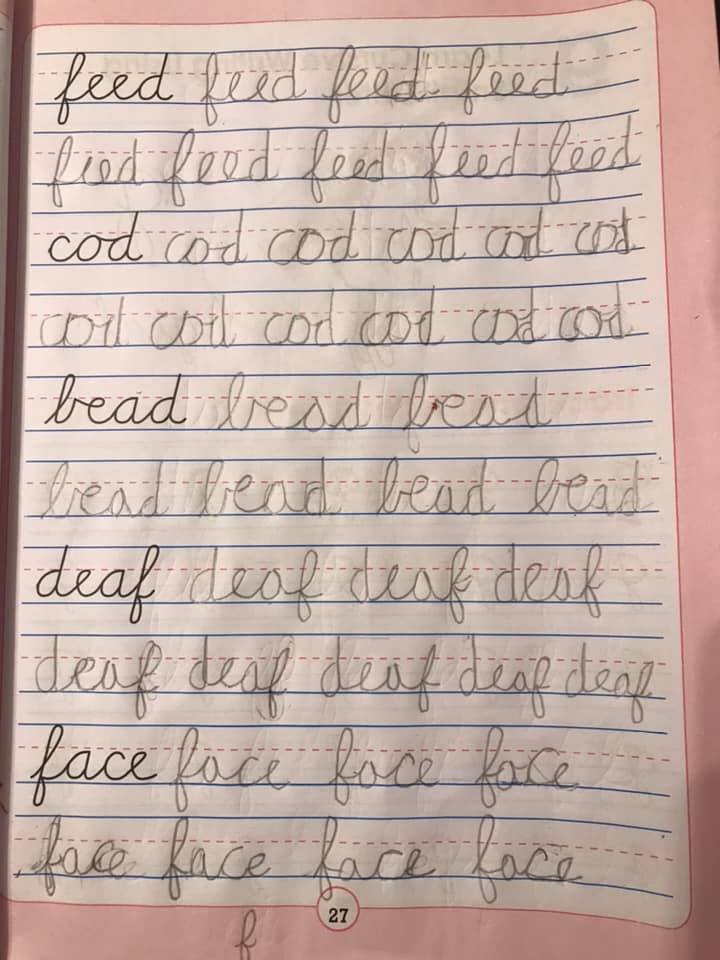 He is also touch typing 15-20wpm and is currently working on learning to write cursive.