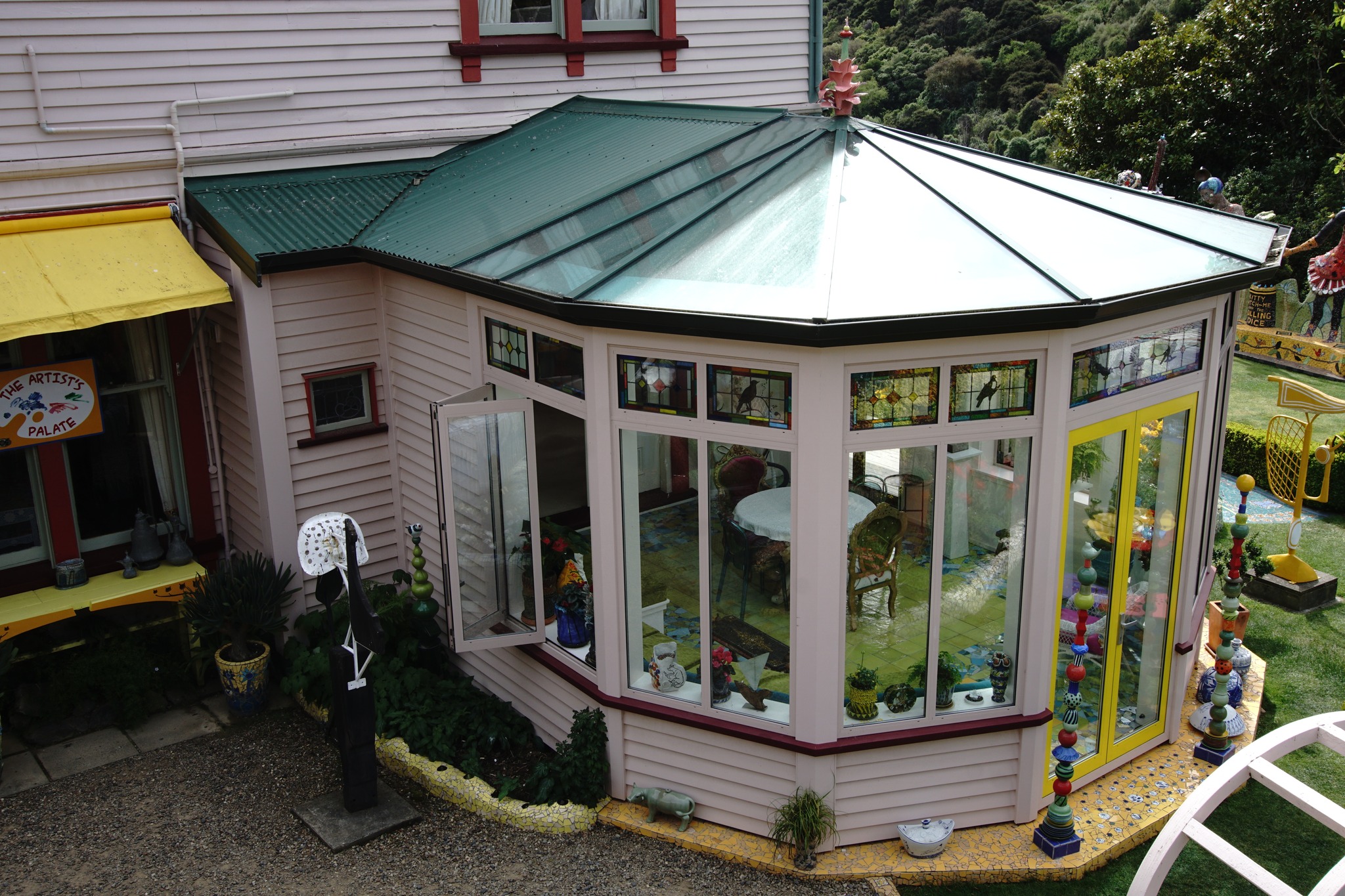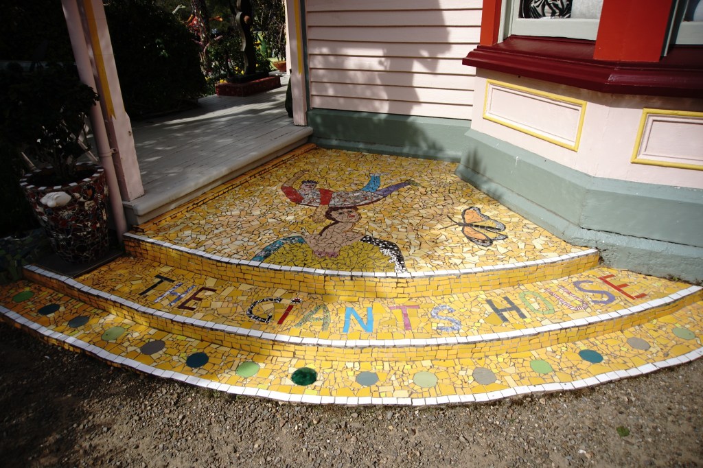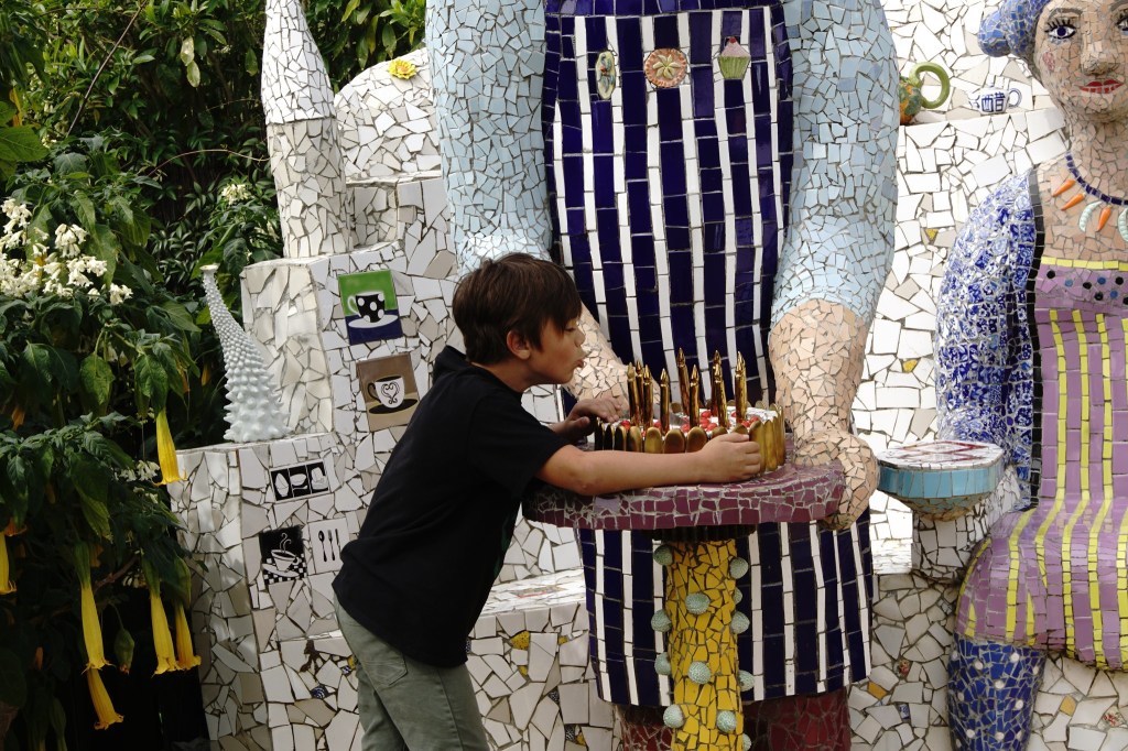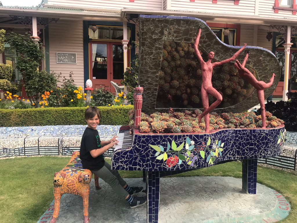 The highlight of our visit there was seeing the Giant’s House (http://www.thegiantshouse.co.nz/). It was Vicki’s birthday and she got to blow out the candles on a colorful mosaic cake.
