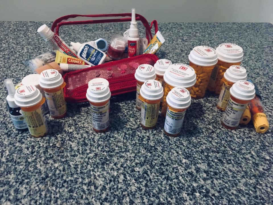 We now look like a walking pharmacy.